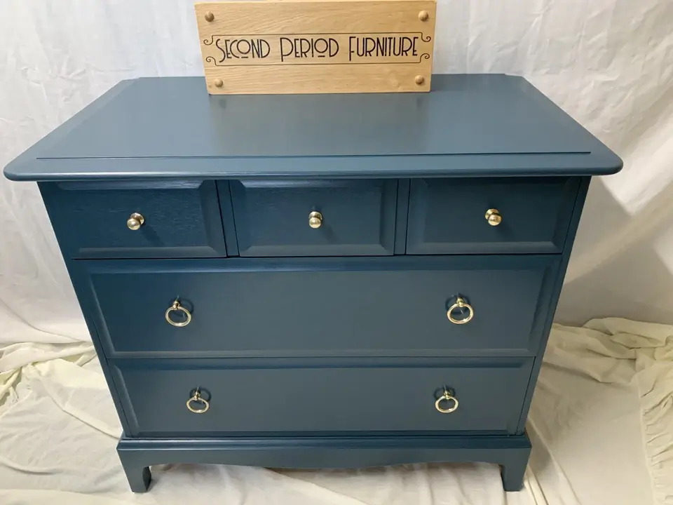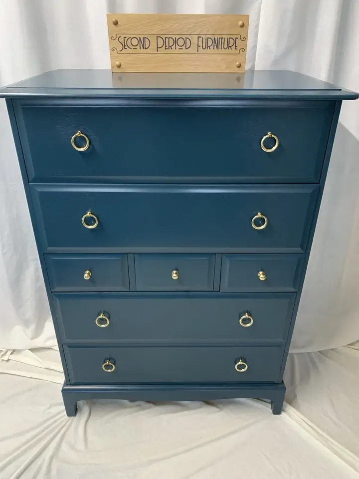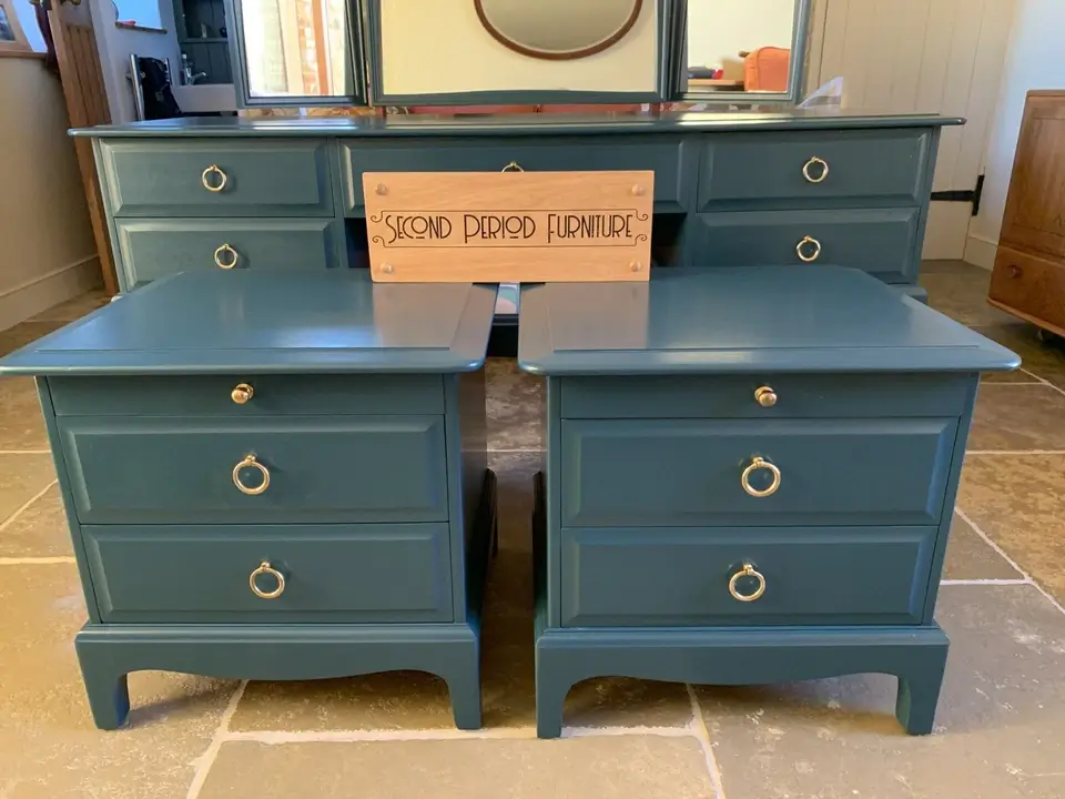 As seen in the photos, I also have a range of other Stag Minstrel bedroom furniture refurbished in the Farrow and Ball colour Haige blue.